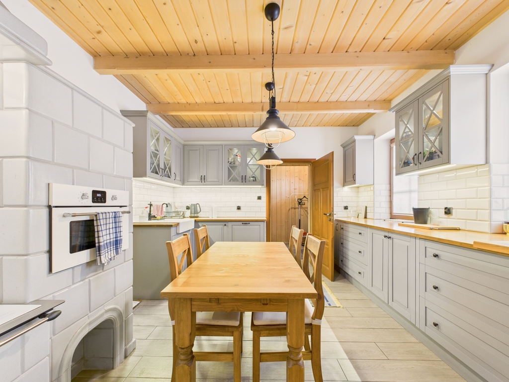 - ogrzewanie – kocioł na ekogroszek, z wygodnym wejściem do kotłowni zarówno od kuchni, jak i z zewnątrz,