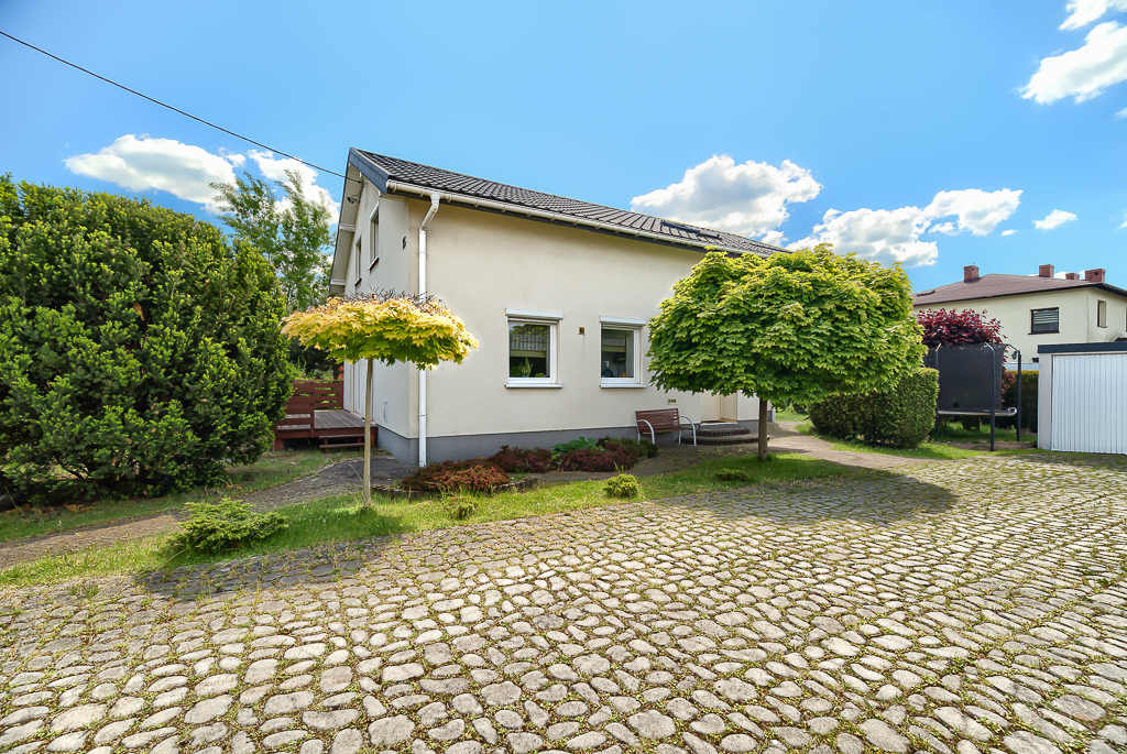 Nieruchomość posiada dwustanowiskowy garaż o powierzchni 36m2 z dużym i szerokim podjazdem na który bez problemu znajdzie się miejsce dla dwóch samochodów.