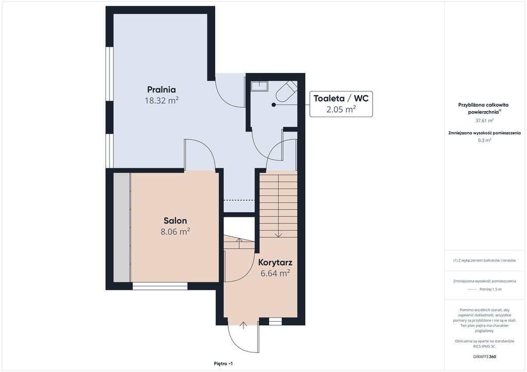 36,15 m² mieści urządzony pokój, oddzielne pomieszczenie na spiżarnię, toaletę oraz kotłownię. Ten poziom doskonale sprawdzi się jako przestrzeń do przechowywania i dodatkowe miejsce do życia.