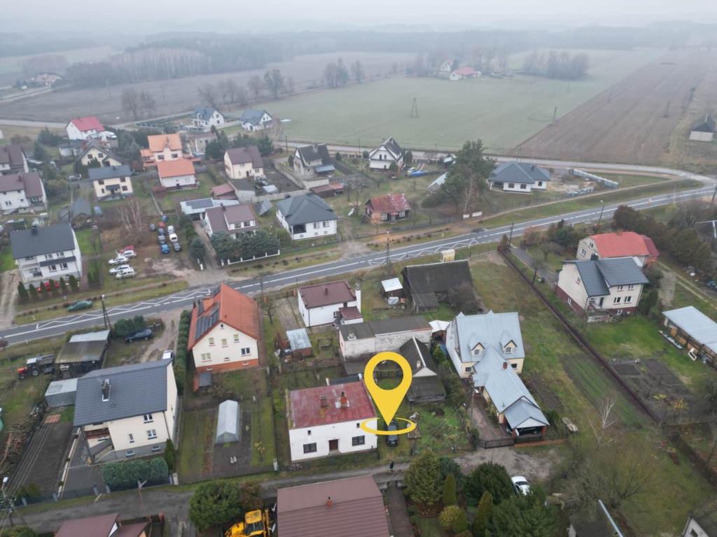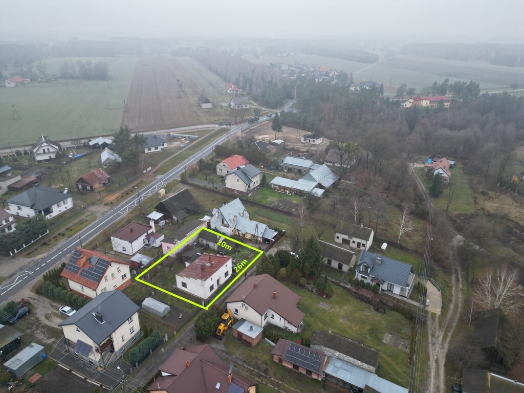 527 m² z domem oraz budynkami gospodarczymi w tym jednym murowanym.
