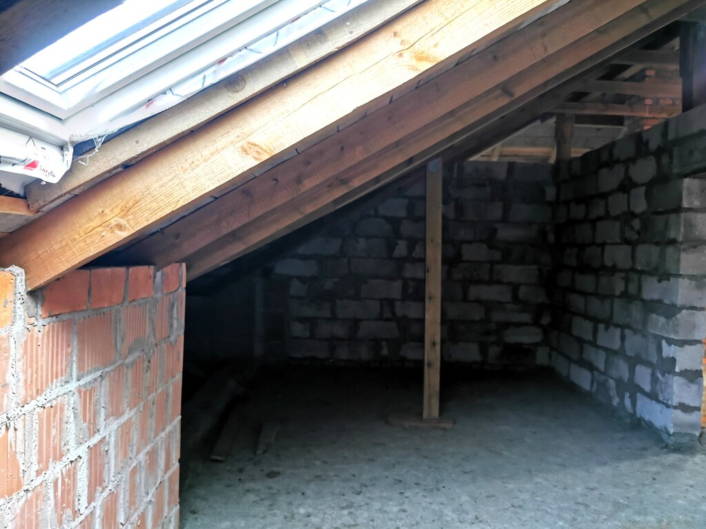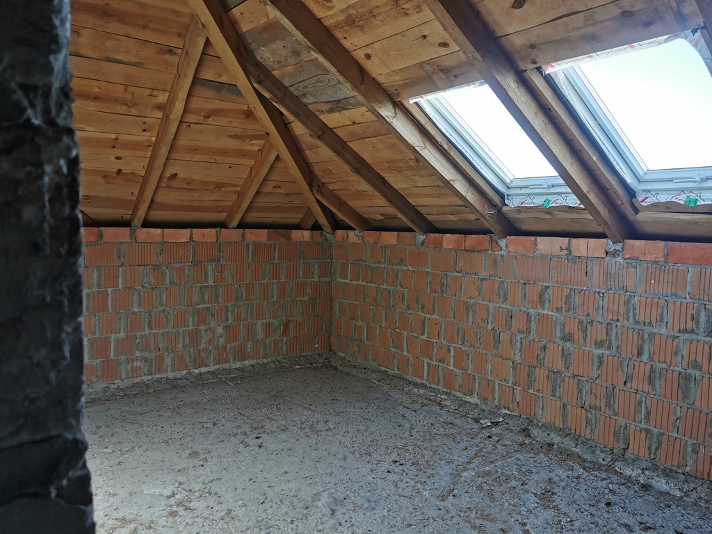 Aktualny etap budowy to stan surowy otwarty z dachem. Woda i prąd wciągnięte są na nieruchomość. Brak rozprowadzonej instalacji hydraulicznej i instalacji elektrycznej. Materiał budowy pustak ceramiczny (1,5 pustaka z mostkiem termicznym wypełnionym 10cm styropianem). Zgodnie z projektem, dom zajmować ma powierzchnię 378,71m2. Wybudowany został z dbałością o szczegóły z materiałów o najwyższej jakości.