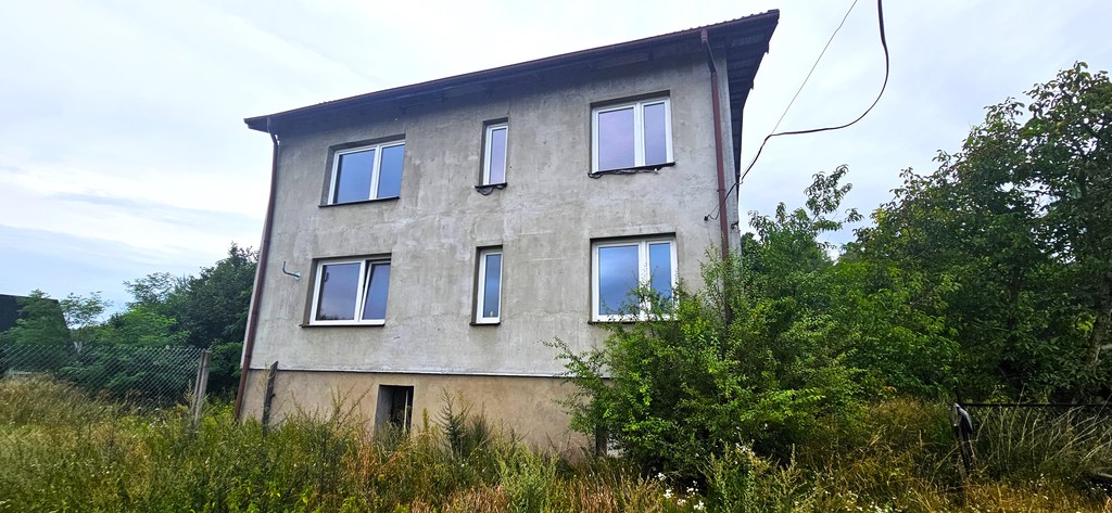 Budynek mieszkalny o powierzchni użytkowej 184 mkw. Materiał budulcowy : pustak, pokrycie dachu: blacha, okna: PCV. Dostępne media: woda, prąd, instalacja trójfazowa. Budynek wyposażony w instalację CO, piec węglowy (rok produkcji 2002).  Stan budynku: do remontu.  Rok budowy domu: 1970.