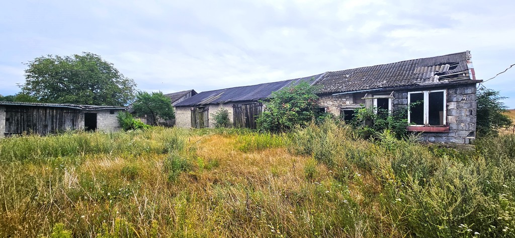 Działka o powierzchni 2 343 m2, zabudowana budynkiem mieszkalnym oraz czterema  murowanymi budynkami gospodarczymi. Pokrycie dachu budynków gospodarczych eternit oraz papa.