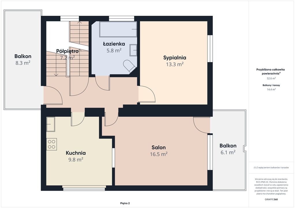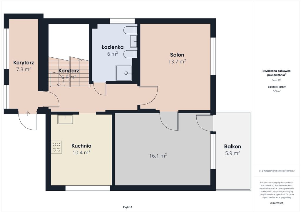 Piętro- salon (16,50m2)+ balkon (6,10m2)