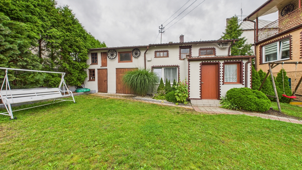 Garaż w bryle budynku, plus budynek gospodarczy wolnostojący.