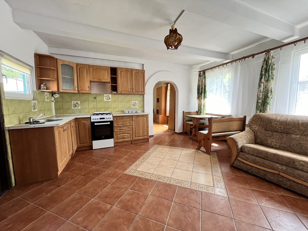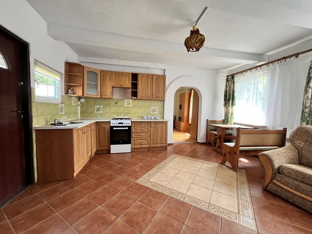 Dom ciepły, zadbany, gotowy do zamieszkania – zarówno na stałe, jak i sezonowo. W kuchni podstawowe sprzęty i zabudowa.