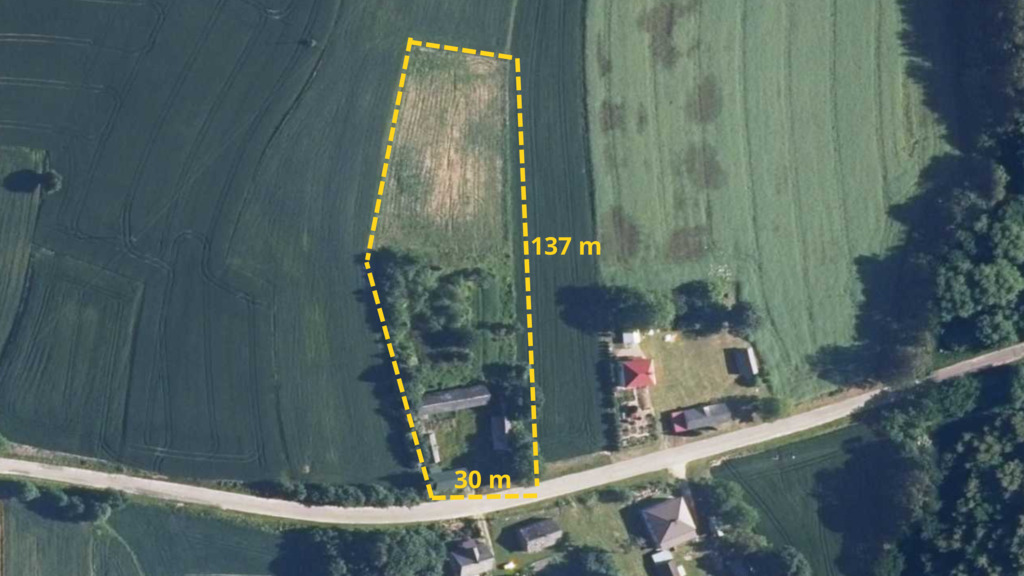 Działka usytuowana jest na lekkim wzniesieniu – widokowa, bardzo dobrze nasłoneczniona, z dostępem do drogi lokalnej. Z tyłu posesji znajduje się sad, który zapewnia naturalny cień, prywatność i wyjątkowy klimat.