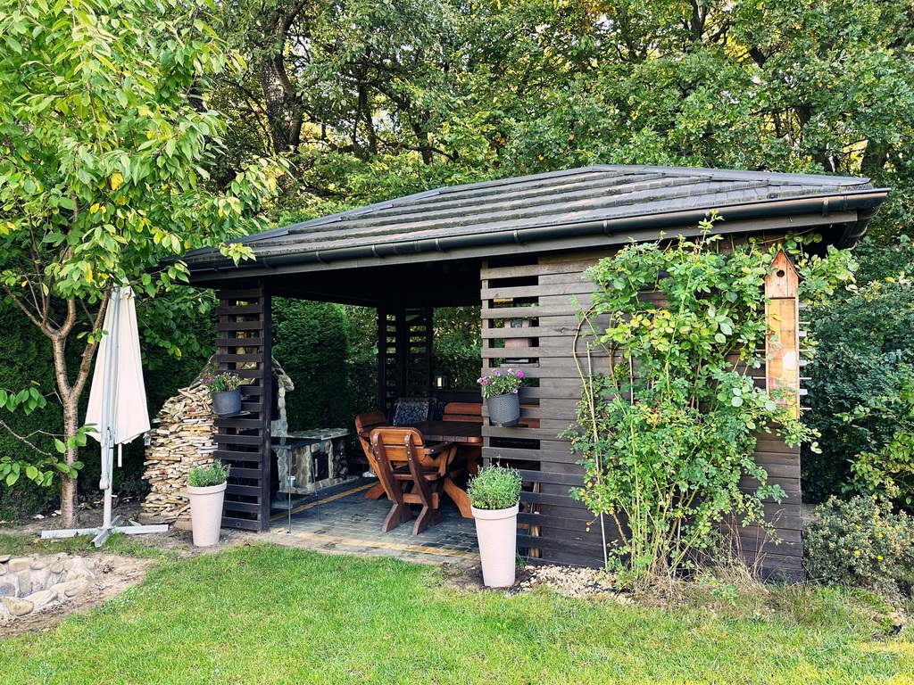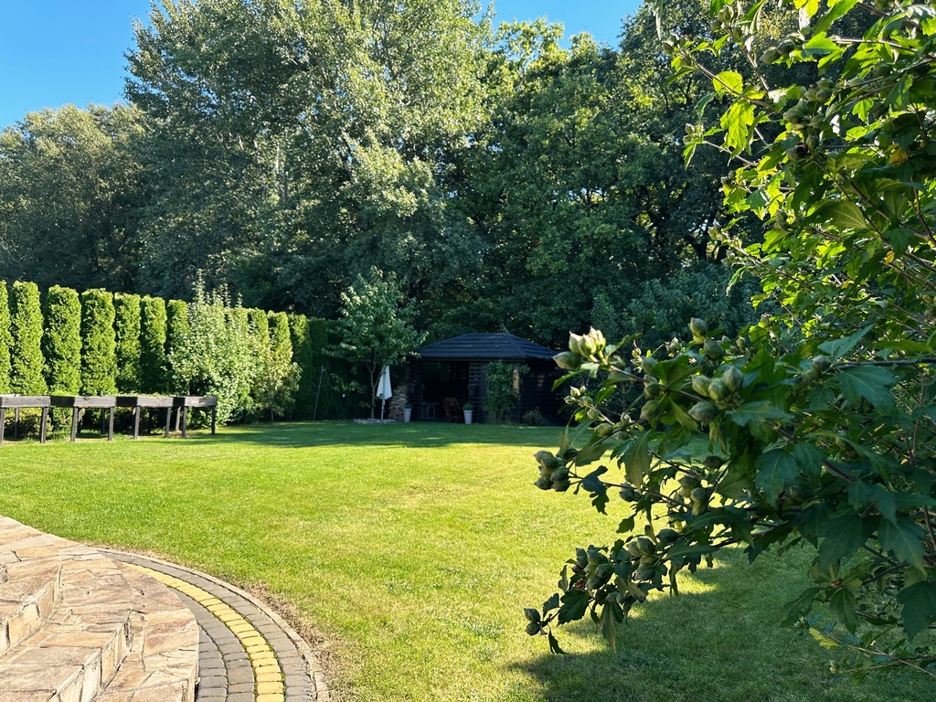 Dom posiada ogród z przepięknymi zasadzeniami , roślinnością bogatą w krzewy i drzewa. W ogrodzie znajduje się altana z grillem oraz bezpośrednie wyście do lasu.