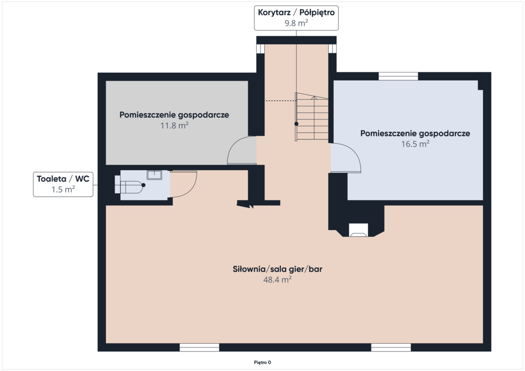Nieruchomość złożona jest z parteru, piętra oraz piwnicy, na które składają się: