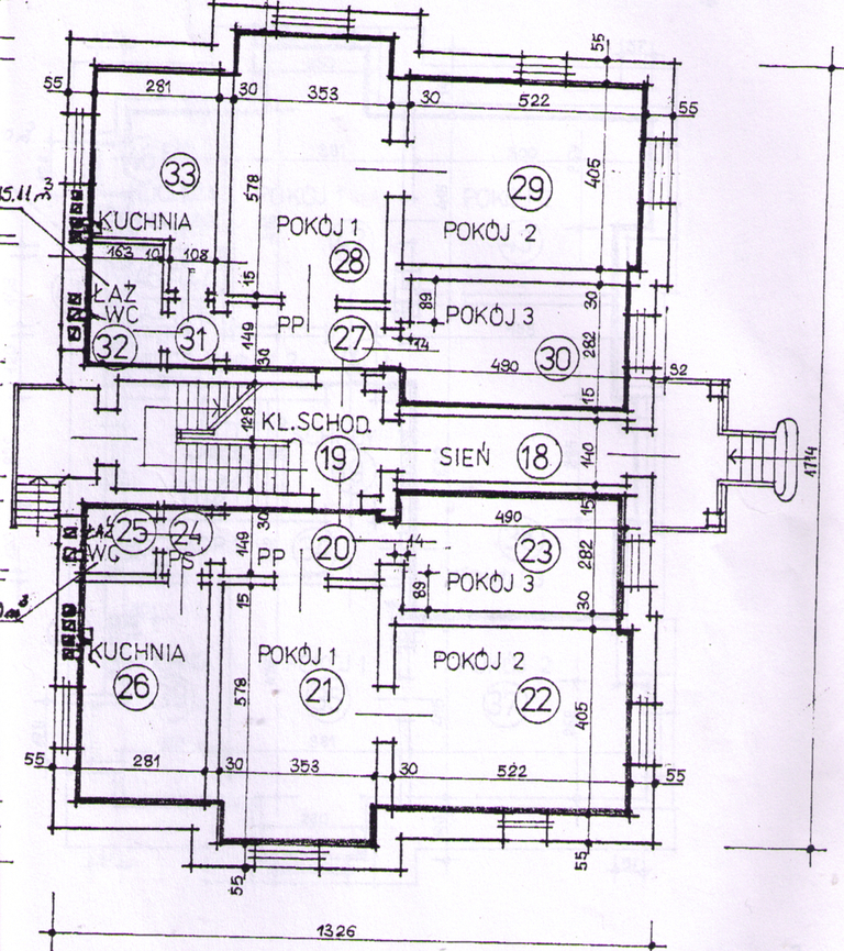 Obecnie przedstawiamy podział budynku na lokale o następującej powierzchni: