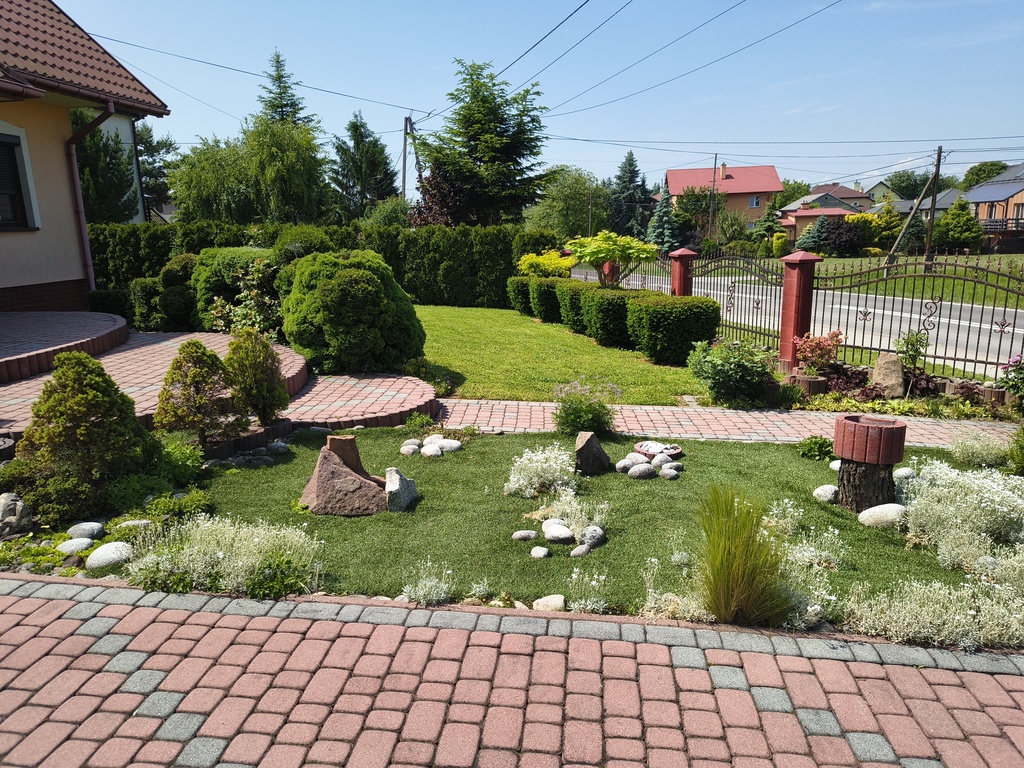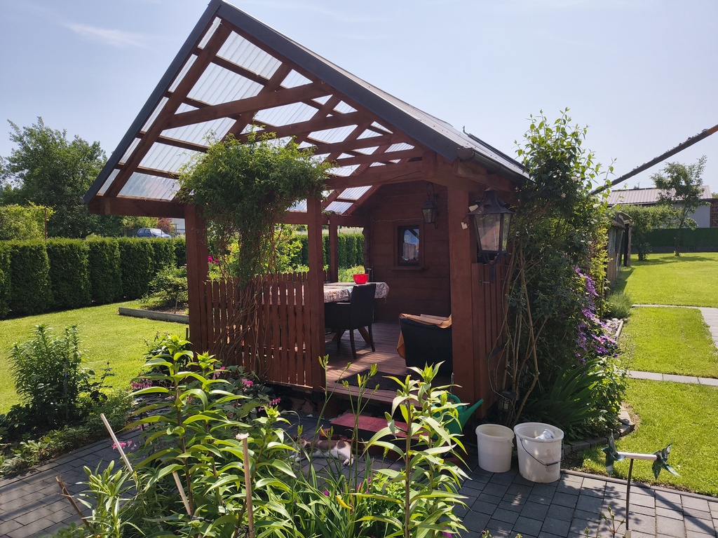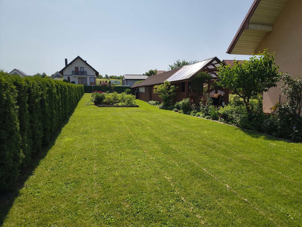 - Duży, zadbany ogród z altaną i nasadzeniami