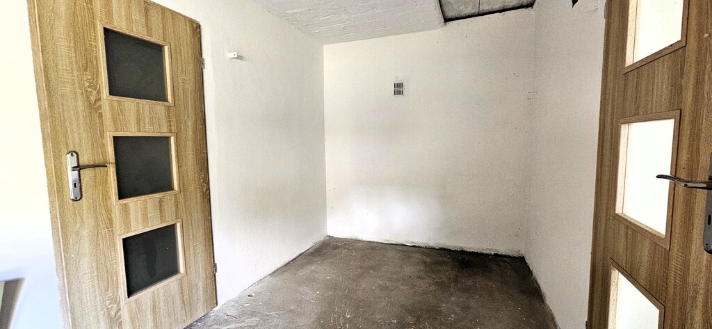 Okna w budynku to dwie sztuki PCV oraz pozostałe drewniane. Budynek posiada strop betonowy i wylewki betonowe, co stanowi solidną podstawę do ewentualnej modernizacji lub rozbudowy.