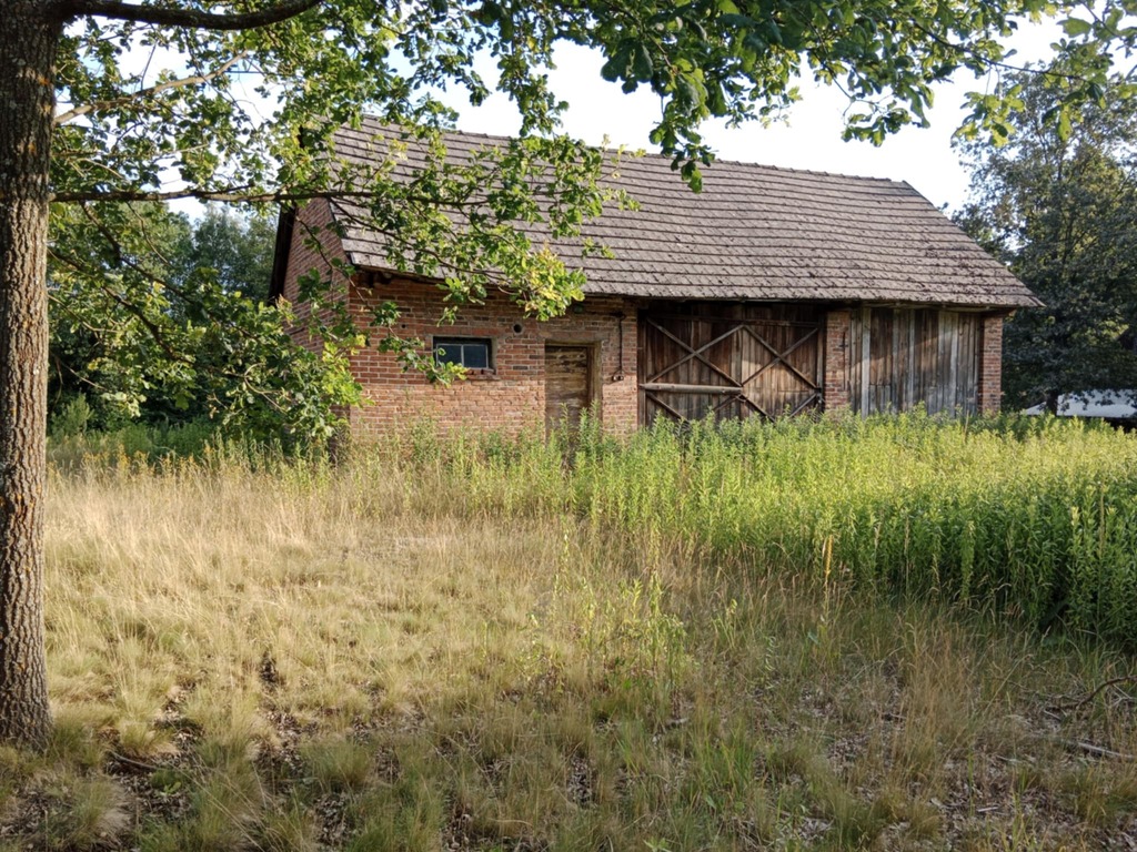 Działka ma kształt zbliżony do prostokąta i jest częściowo zadrzewiona, co daje możliwość ciekawej aranżacji ogrodu lub przestrzeni rekreacyjnej. Drewniany dom oraz budynek gospodarczy (stodoła), które są na działce po przeprowadzeniu remontu mogą posłużyć zarówno
