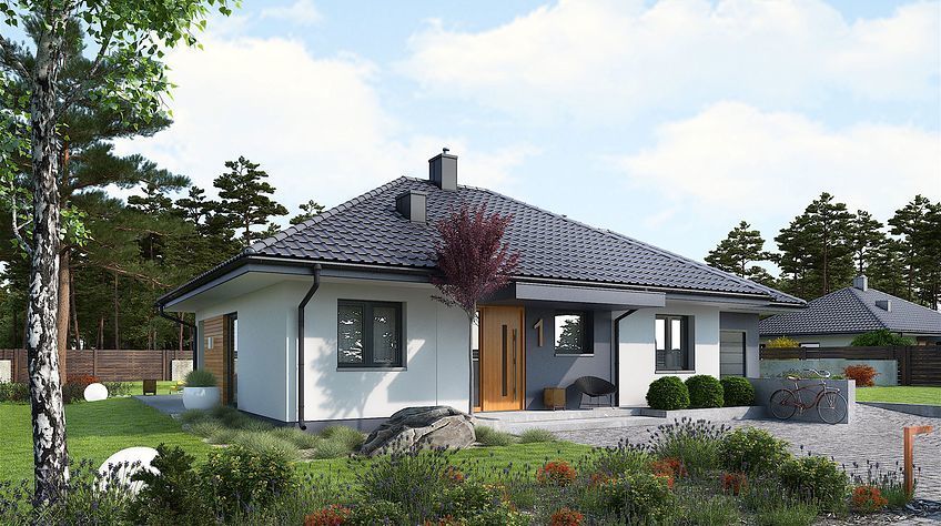Powierzchnia użytkowa mieszkalna domu parterowego wynosi 95,64 m2, plus garaż 19,67m2 oraz kotłownia 7,29m2