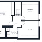 PIĘTRO:- 3 sypialnie (w tym jedna z garderobą - 5,1 m²) 21.2 m²+15.2 m²+15.2 m²,