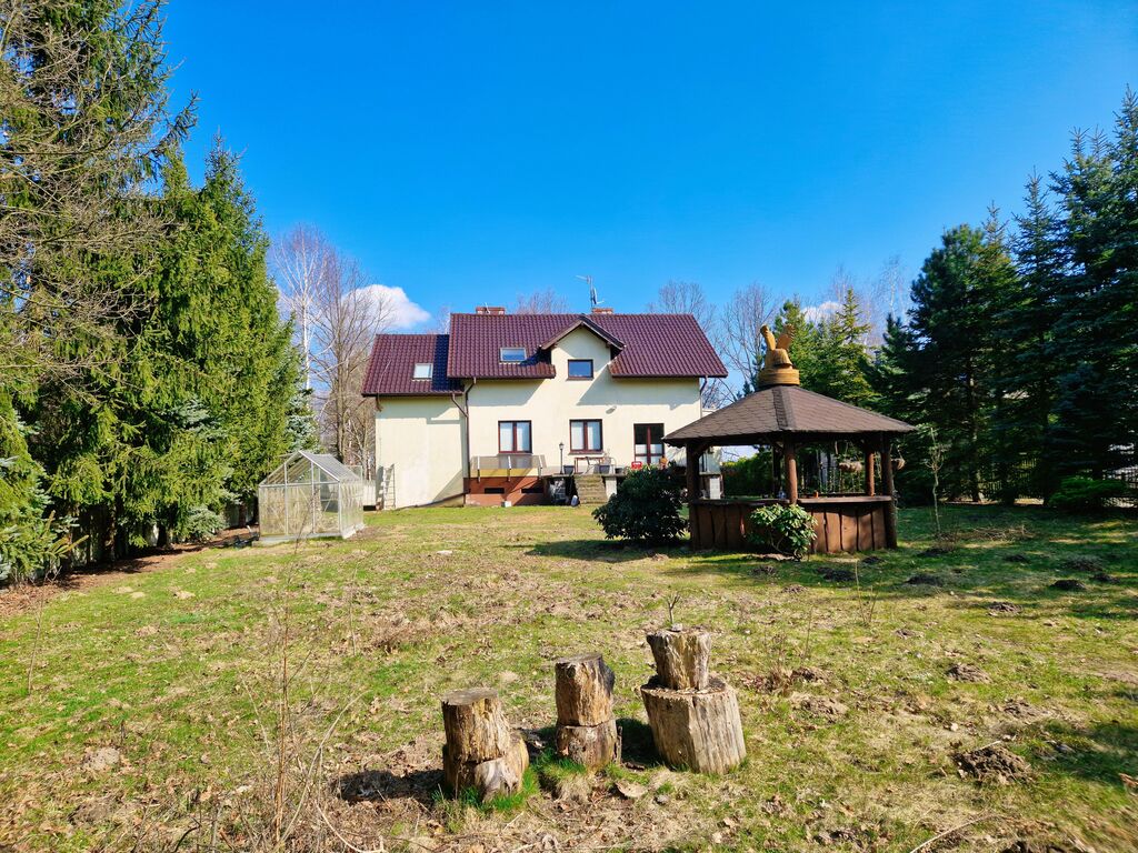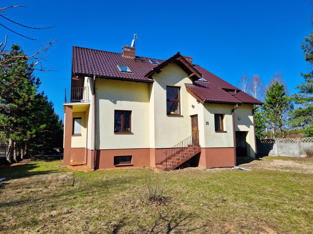 Dom wykonany z solidnych materiałów, ocieplony, dach pokryty dachówką ceramiczną. Działka ogrodzona, z licznymi krzewami i drzewami, które dają poczucie prywatności. Z tyłu posesji miejsce na rekreację i domek letni.