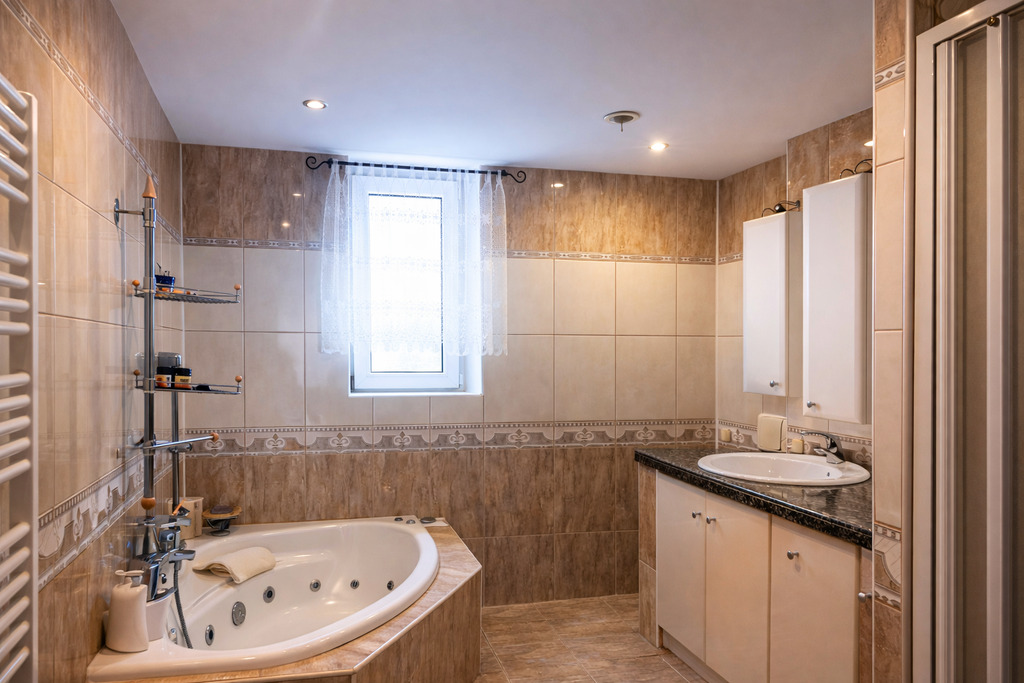 • Duża łazienka w części piwnicznej – może z powodzeniem pełnić rolę wygodnej pralni