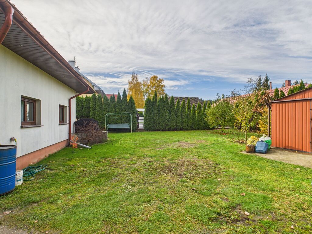 - atrakcyjna działka o powierzchni 695 m², zagospodarowana z nasadzeniami drzew i krzewów zapewniająca prywatność i komfort wypoczynku,