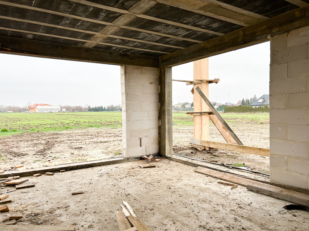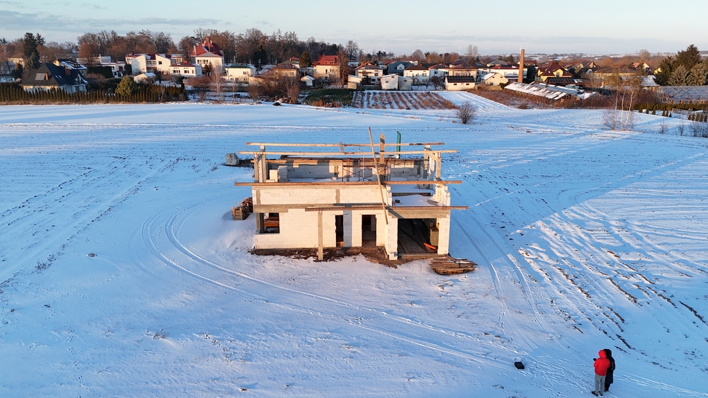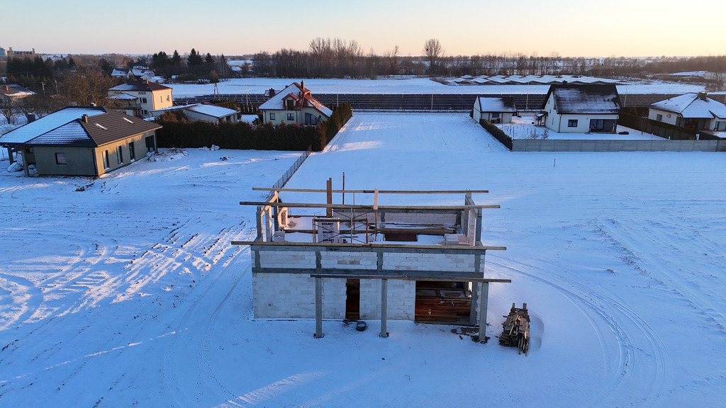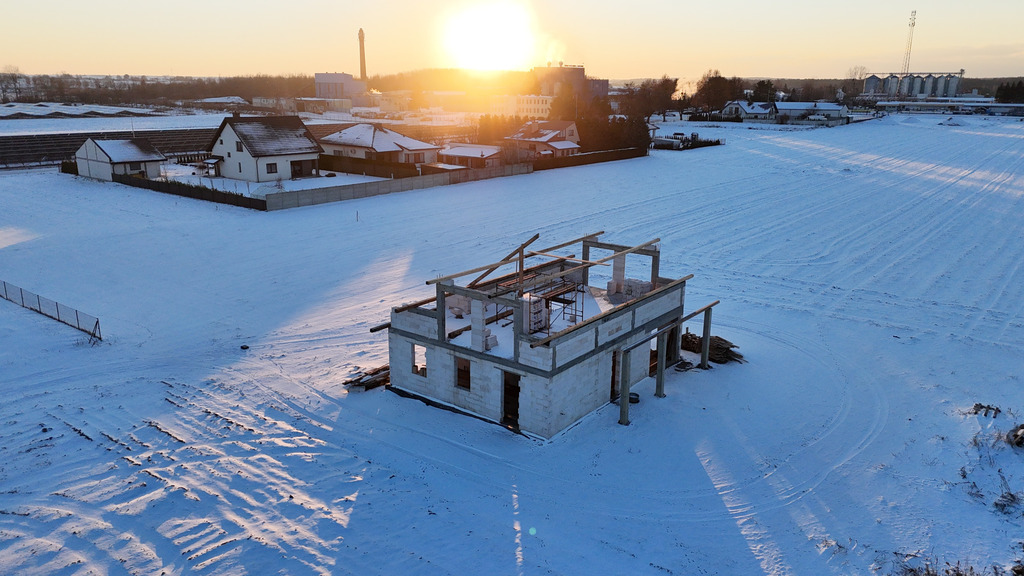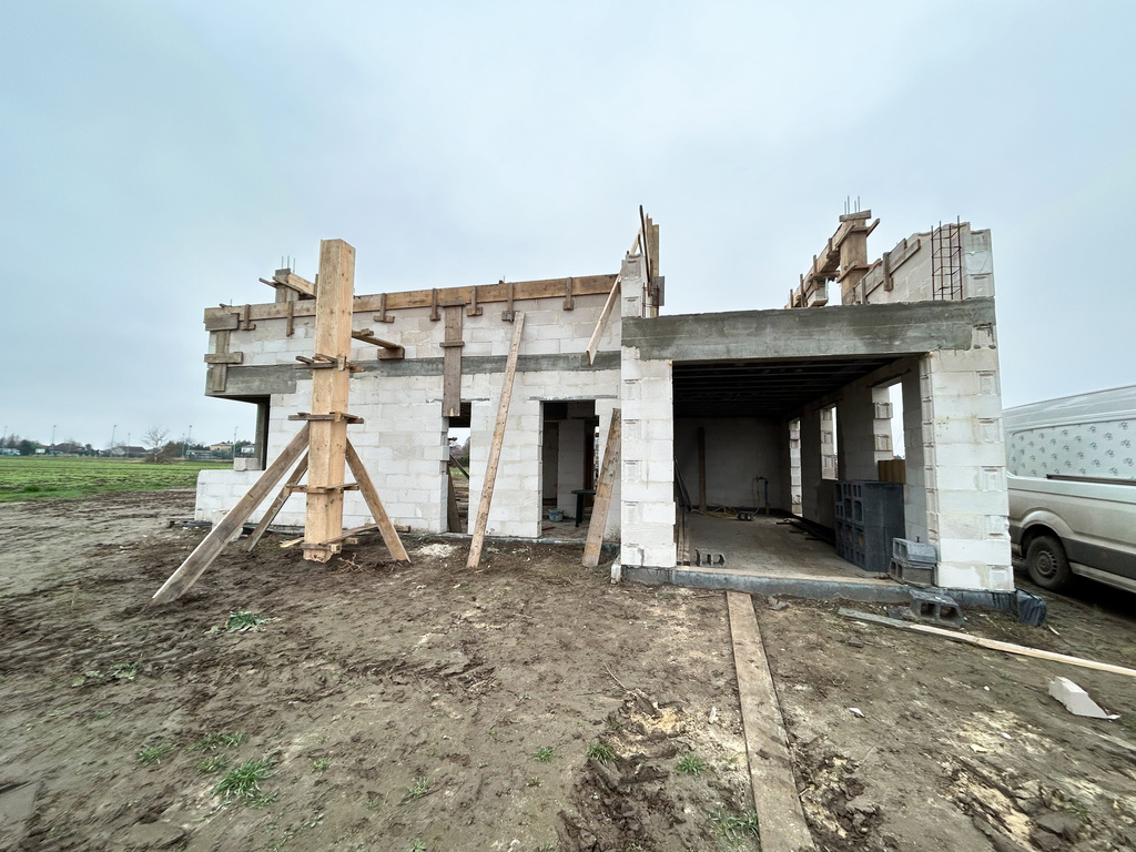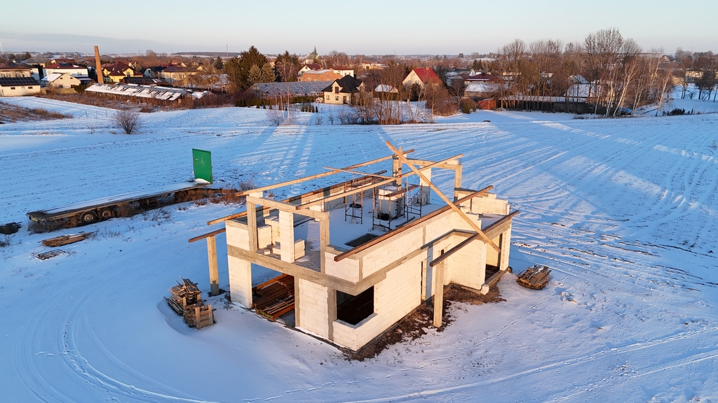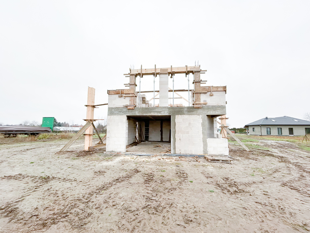 - Stan budowy: Aktualnie stan surowy otwarty (widoczny na zdjęciach). W najbliższym czasie, przy sprzyjających warunkach pogodowych, prace będą kontynuowane – dom zostanie przykryty dachem.
