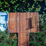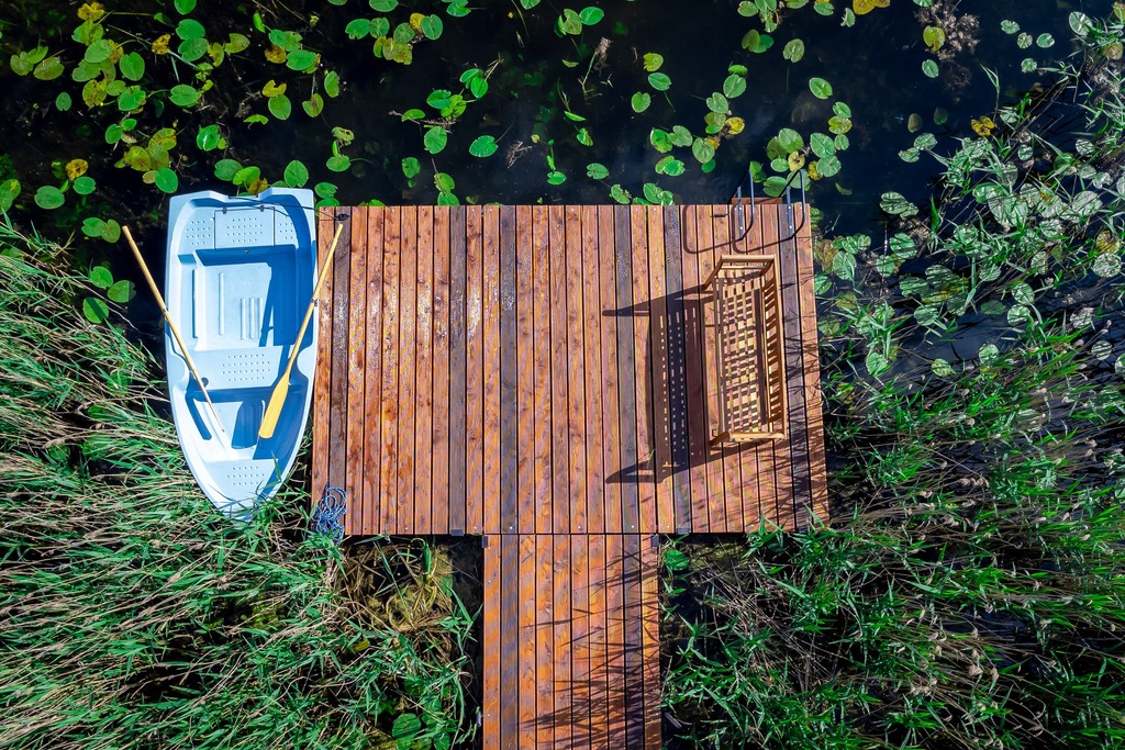 Dom na działce z linią brzegową i pomostem