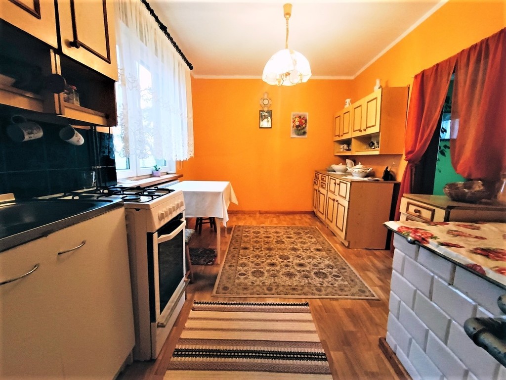 Dodatkowo kominek kaflowy oraz zabytkowa kuchnia.