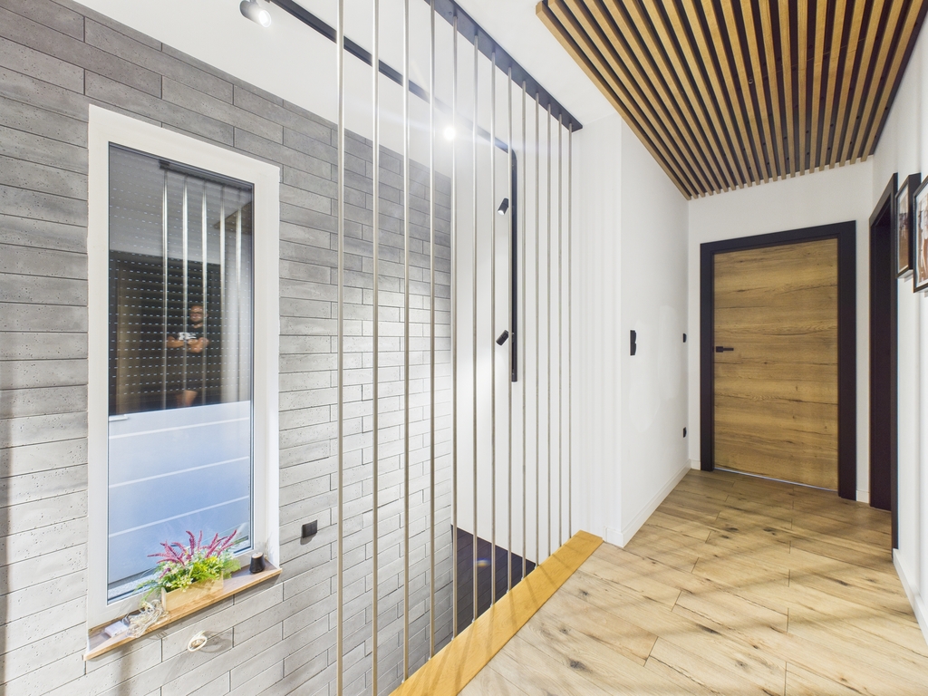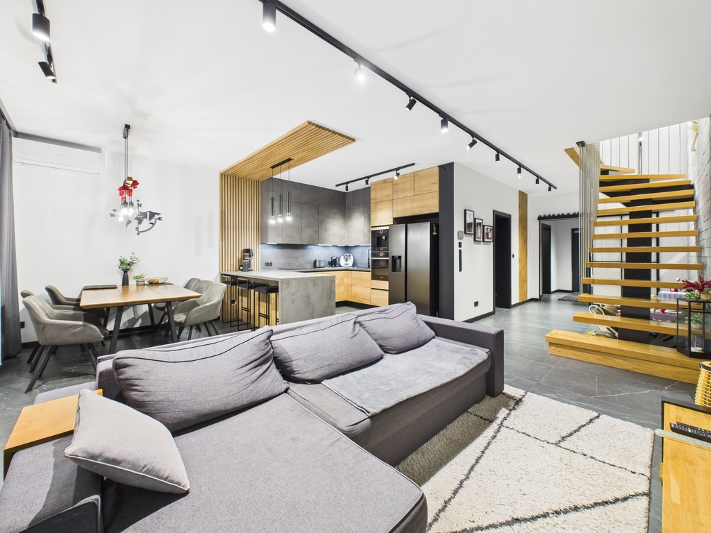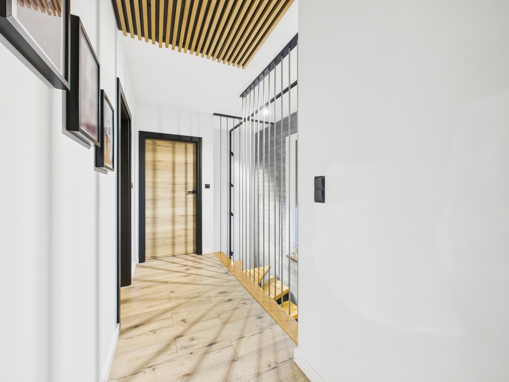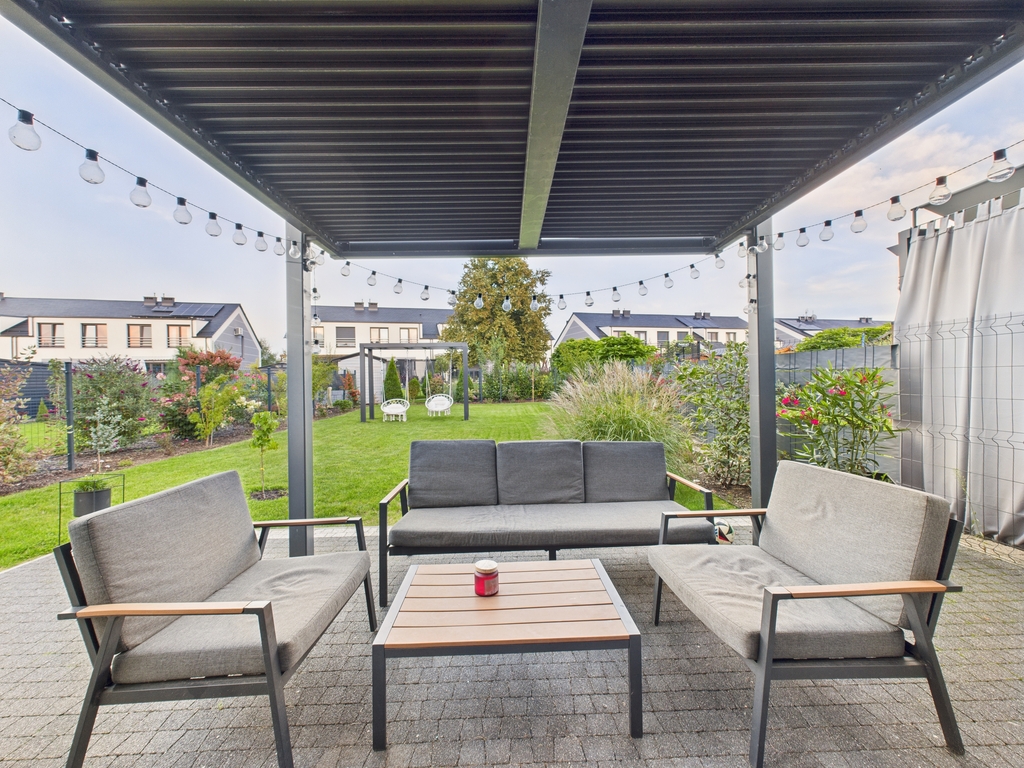Skrajny dom w zabudowie szeregowej, wykończony w wysokim standardzie, o powierzchni użytkowej 146,06 m2, położony na działce o powierzchni 360 m2, w bardzo dobrze skomunikowanej, a zarazem spokojnej lokalizacji.