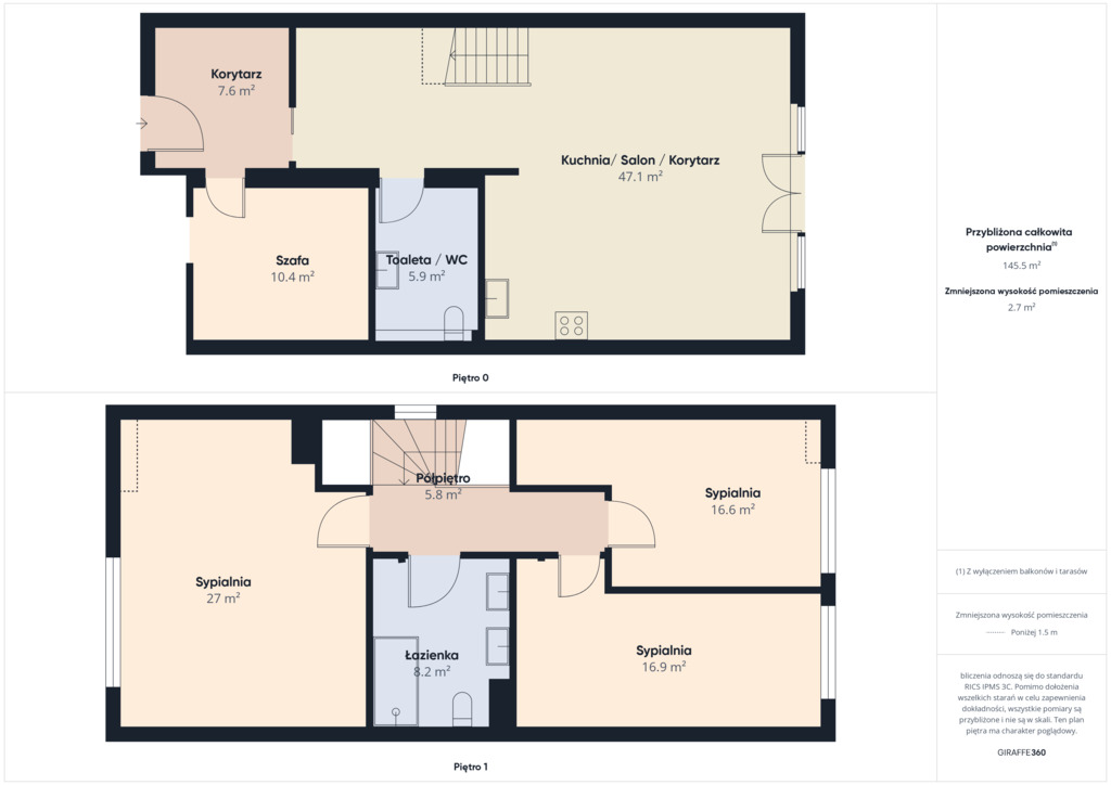 Powierzchnia użytkowa wynosi 146.06 m2. Działka 360 m2.