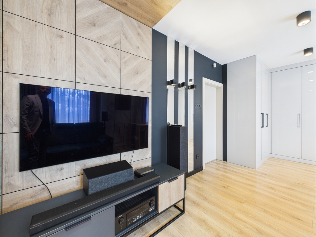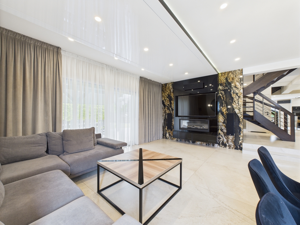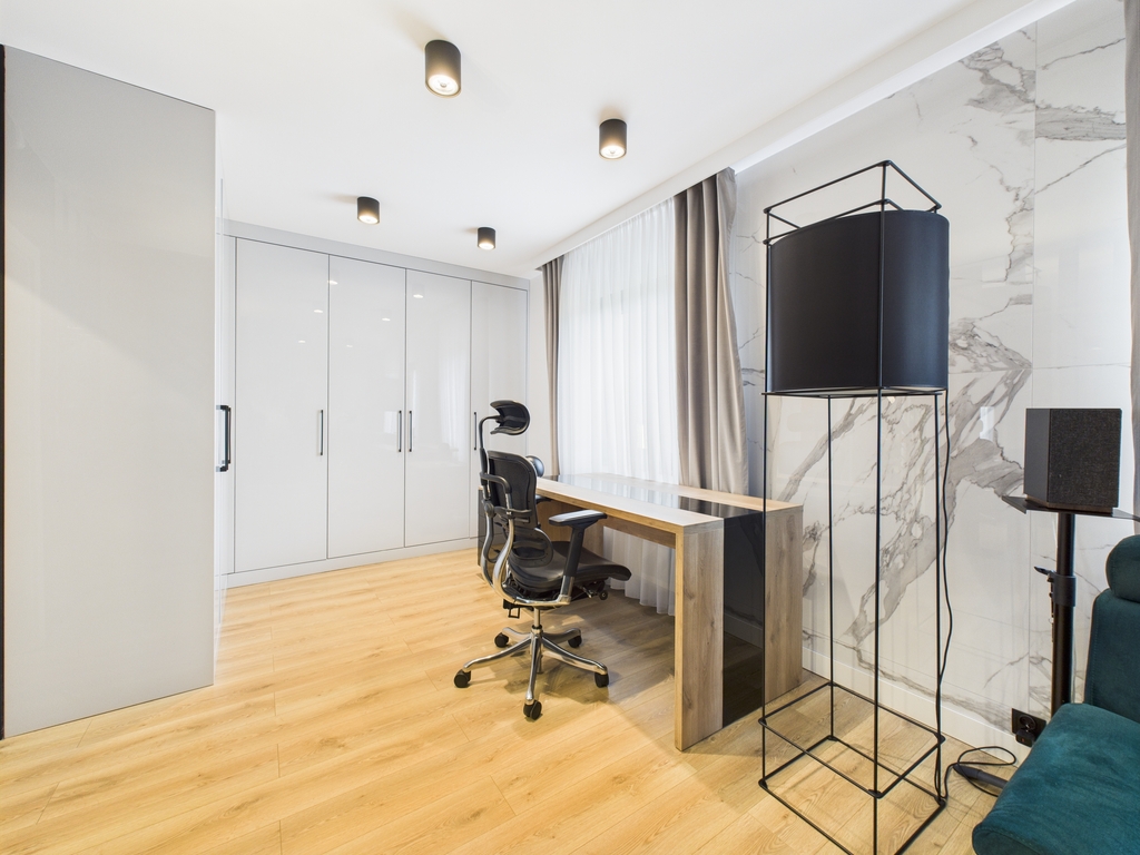Wszystkie pomieszczenia są klimatyzowane, posiada ogrzewanie podłogowe. Meble zostały wykonane na zamówienie, w zabudowie pod wymiar. Cały sprzęt jak i materiały użyte do wykończenia są najwyższej jakości.