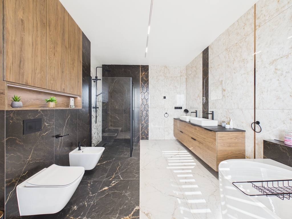 - 3 łazienki o powierzchniach 5m2, 4.1m2 i 15.5m2, wszystkie w pełni wykończone, wyposażone w kabiny prysznicowe oraz dodatkowo największa w wannę gwarantującą chwile relaksu