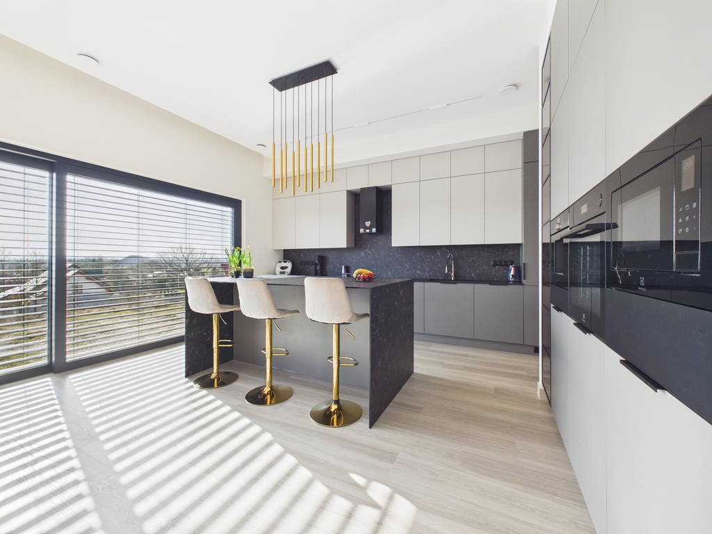 Kuchnia otwarta, nowoczesna, z wyspą, w pełni wyposażona w wysokiej jakości sprzęt AGD