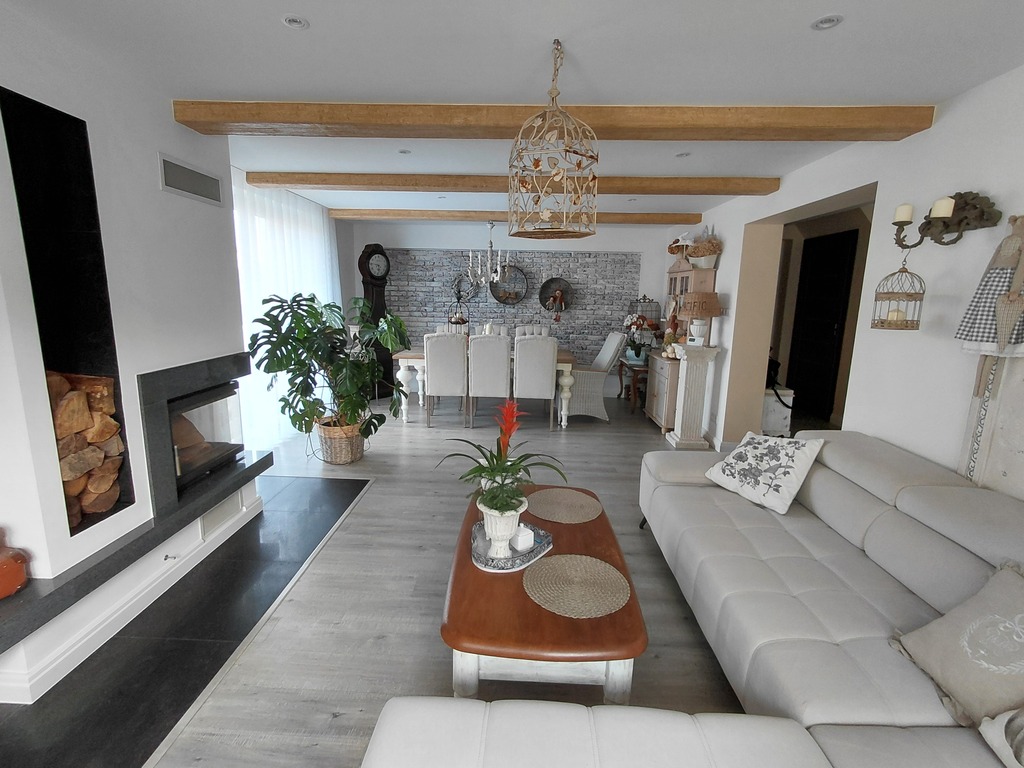 - Ogrzewanie centralne - dwa rodzaje: elektryczne i alternatywnie piec na paliwo stałe. Grzejniki panelowe, instalacja miedziana. Dodatkowo kominek w salonie z grawitacyjnym rozprowadzeniem ciepła. Ponadto w obu łazienkach poza grzejnikami ogrzewanie podłogowe. W piwnicy również wszystkie pomieszczenia ogrzewane.