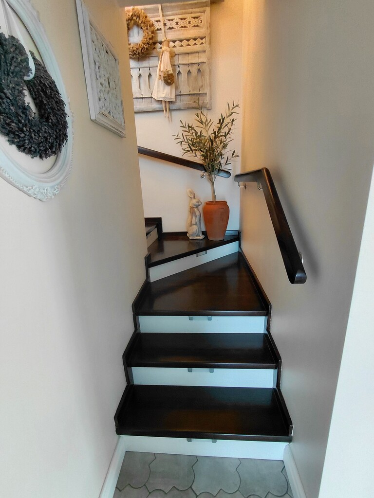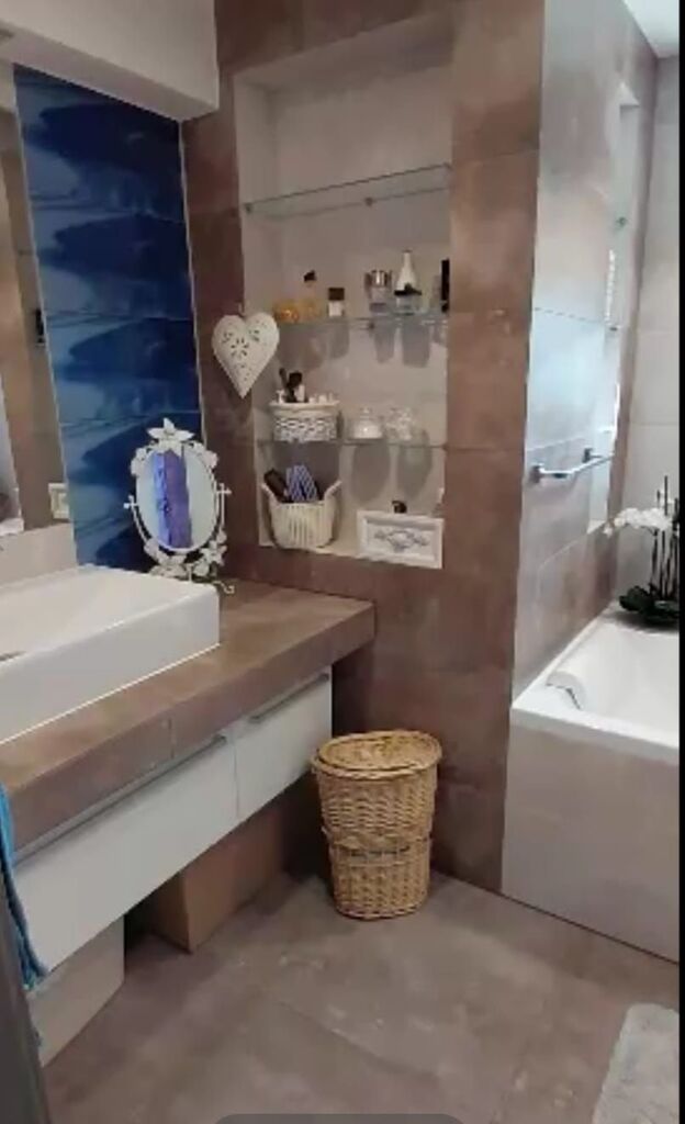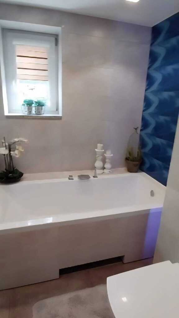 - Na podłogach w całym domu za wyjątkiem piwnicy panele winylowe, w piwnicy płytki.