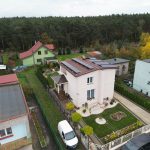 - Na dachu blachodachówka i panele fotowoltaiczne ustawione na wszystkie cztery strony świata.