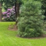 Niewątpliwym atutem tej nieruchomości jest piękny ogród – starannie zaplanowany i zadbany. Można odnieść wrażenie, że jest to ogród botaniczny. Rosną tu sosny (pospolita, czarna, wejmutka, limba), świerki (pospolity, niebieski), jodła (koreańska, lokówka), a nawet piękna 3 metrowa sośnica japońska stanowiąca osobliwość o wartości kolekcjonerskiej. Swoje miejsce znalazły też buki, klony i dąb, który jesienią przebarwia liście na czerwony kolor. Rosną tu także brzozy, graby, żywotniki, cyprysik. Wiosną kwitnie magnolia, różaneczniki (jest ich osiem), azalie, tulipany, irysy oraz peonie w kolorach różowym, czerwonym, białym i żółtym. Latem kolorytu dodają róże, clematisy, pelargonie, begonie, funkie oraz żurawki. Ozdobą ogrodu są hortensje – ogrodowa, bukietowa oraz pnąca.