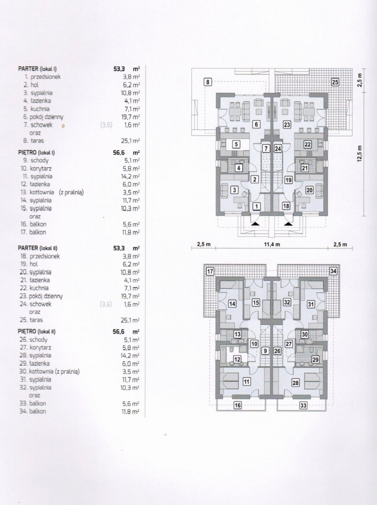 piętra (56,6m2) składają się: