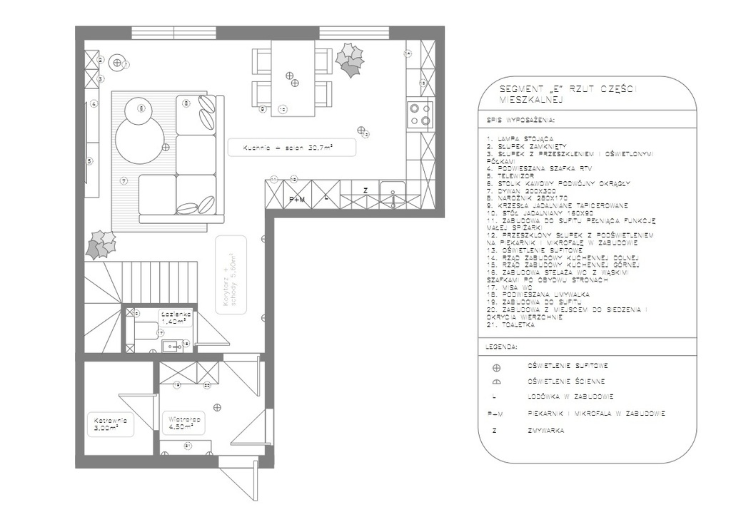 - salonu z kuchnią