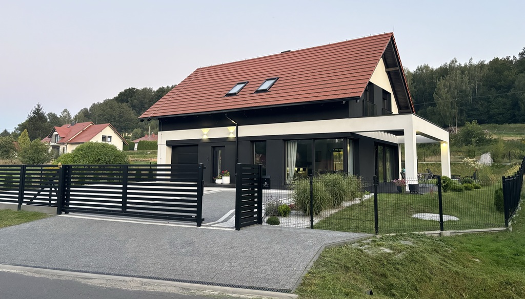 DOM SKŁADA SIĘ Z (1 Piętro):- 4 pokoi, w tym jeden pokój z garderobą,
