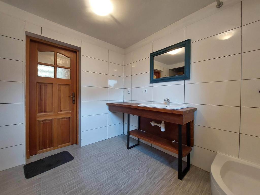 Podłogi - terakota, ściany odnowione, pokryte płytą gipsowo - kartonową