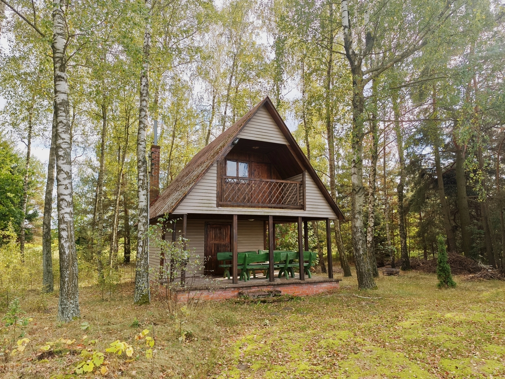 Część działki rekreacyjna to prywatny lasek, huśtawka, domek letniskowy.