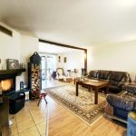 - salon z kominkiem i aneksem kuchennym
