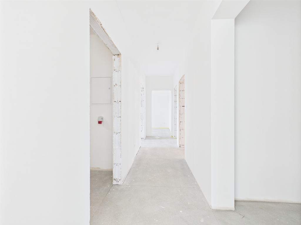 Ściany zostały wygładzone i pomalowane. Zostało wykonane również podejscie pod kominek w salonie