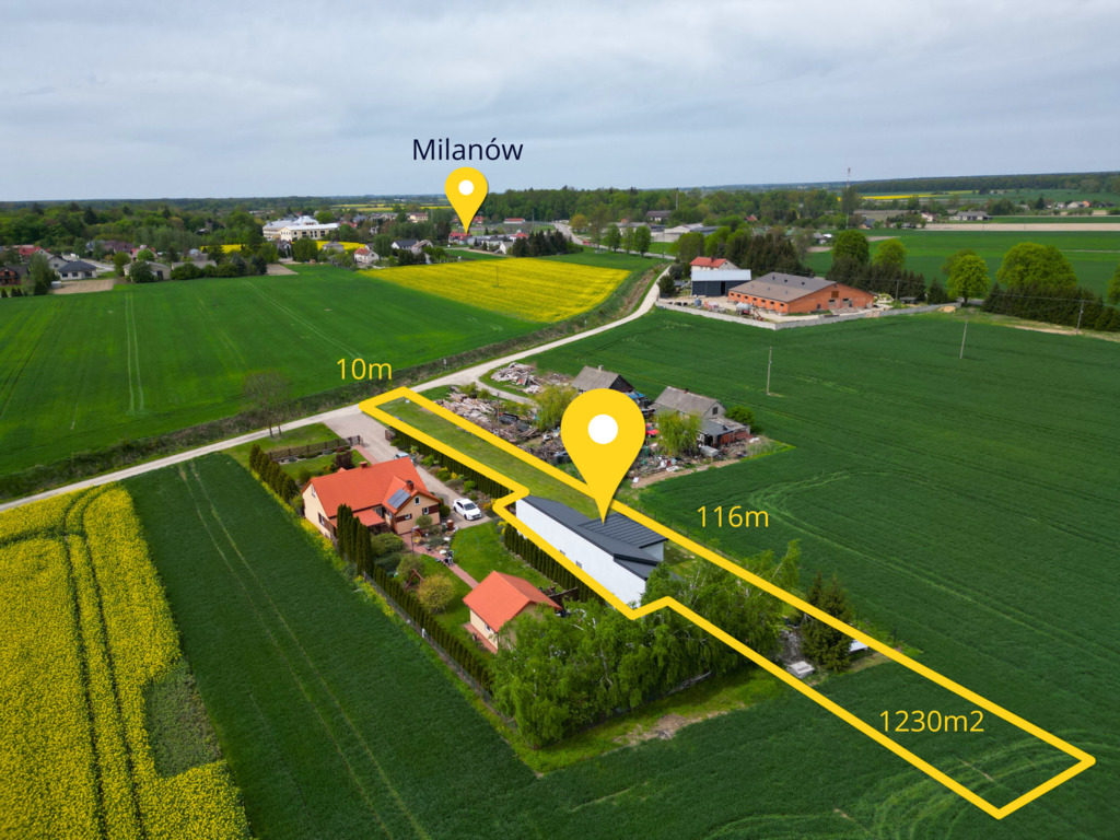 Nieruchomość położona jest w Kolonii Milanów, w spokojnej i zielonej okolicy. W sąsiedztwie zabudowa jednorodzinna, pola i tereny otwarte. Do do centrum Milanowa i Parczewa – szybki i wygodny dojazd. To idealna propozycja dla osób ceniących ciszę i przestrzeń, a jednocześnie chcących pozostać w zasięgu miasta.