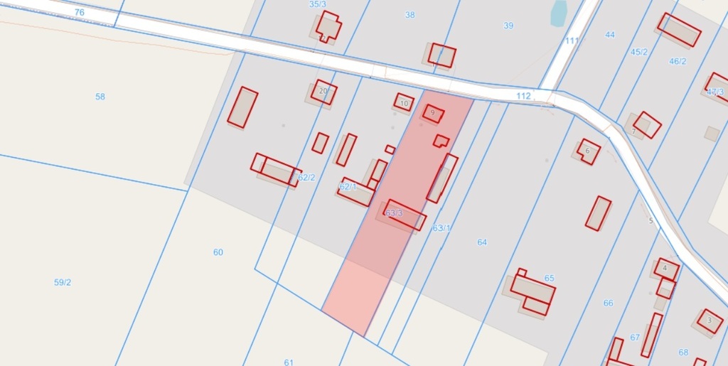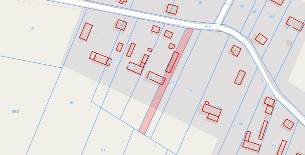 Działka nr 63/2 = 1233m2 Działka nr 63/3 = 3547m2