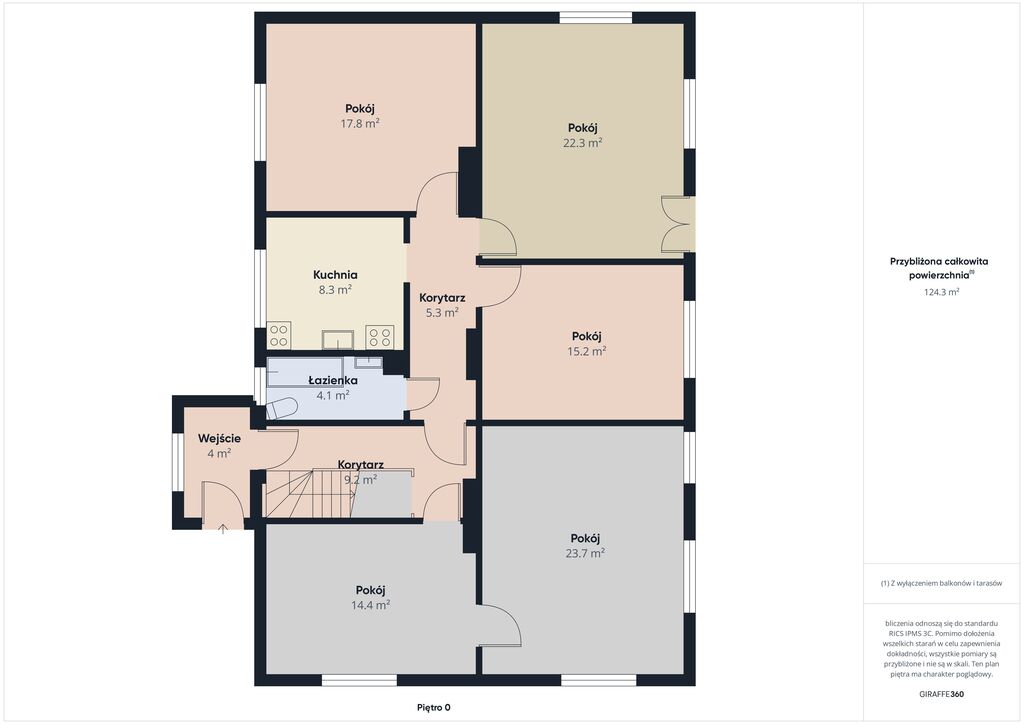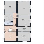 - Pięć pokoi: o powierzchniach: 17,8 m², 23,5 m², 16,2 m², 15,1 m², 14,4 m² – dają swobodę w aranżacji na sypialnie, pokoje gościnne, biura lub przestrzenie hobby.