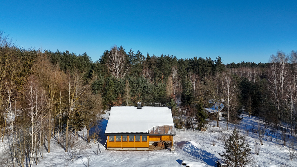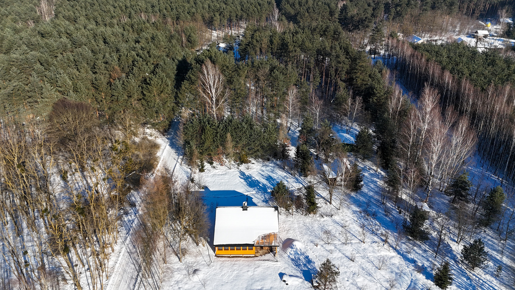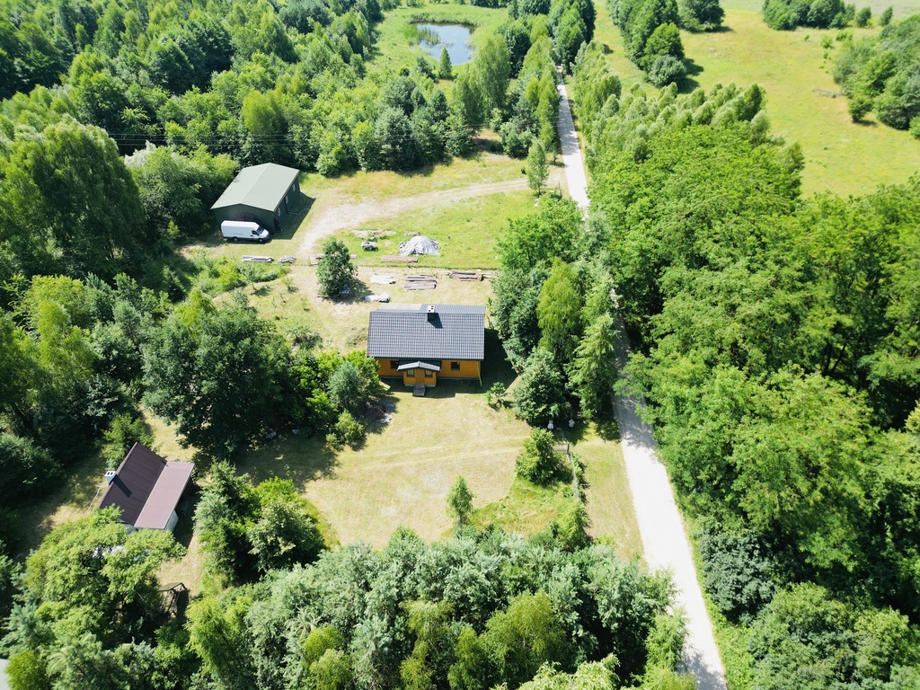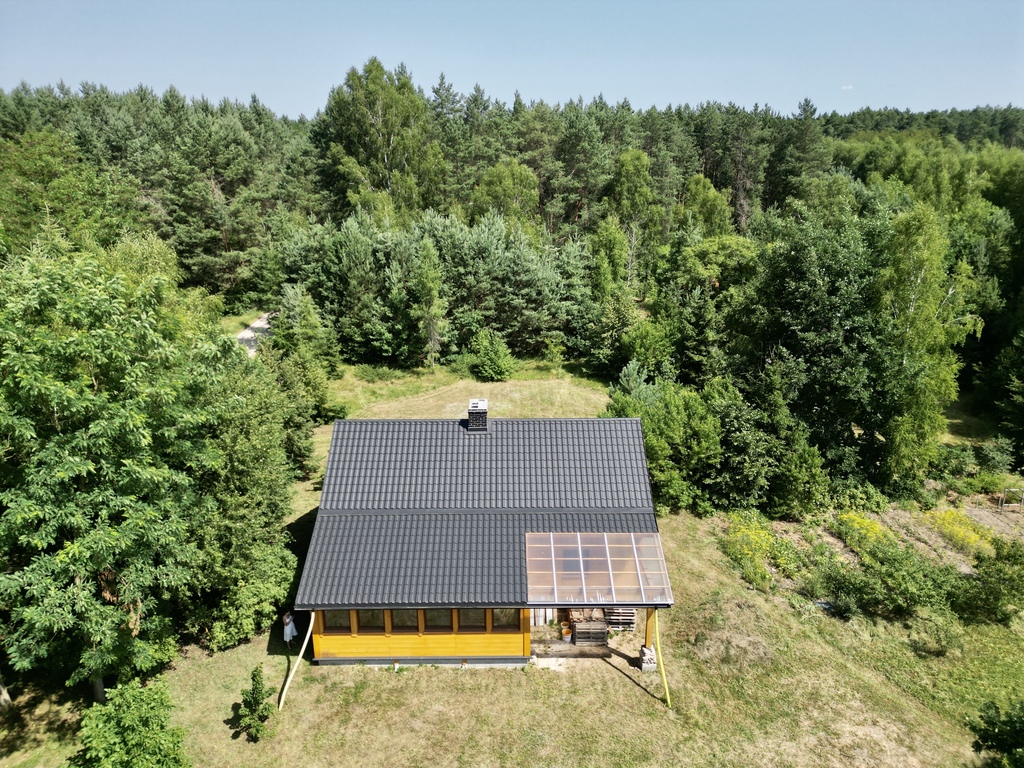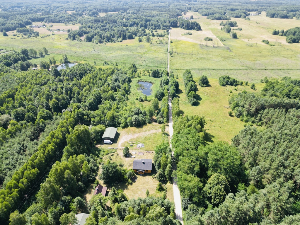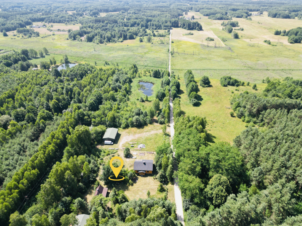 Nieruchomość otoczona jest prywatnym lasem, co zapewnia ciszę, spokój i bliskość natury.