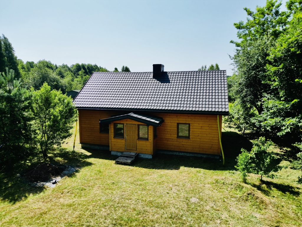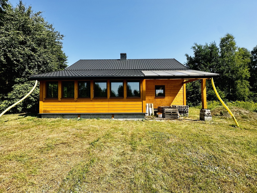 dom o solidnej, drewnianej, konstrukcji o powierzchni 131m2 w stanie surowym zamkniętym.Budynek jest całoroczny zbudowany przez doświadczonego stolarza!
