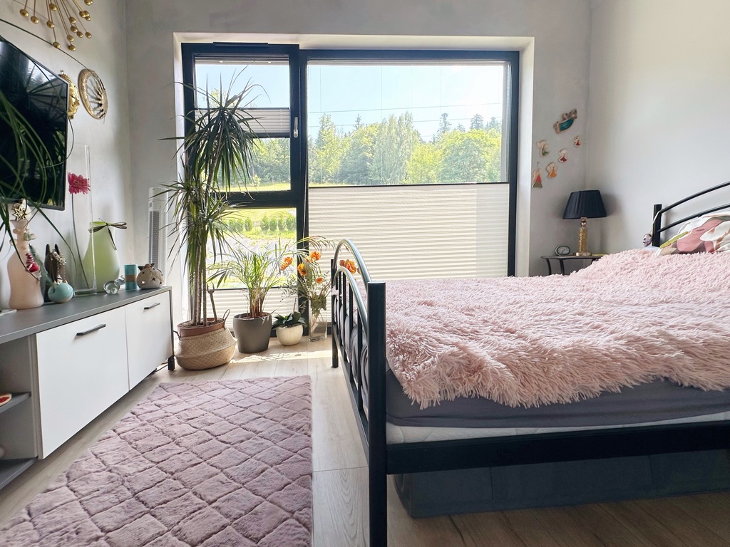 Jest wykończony "pod klucz", wyposażony w niezbędny sprzęt AGD wysokiej klasy oraz gotowy do zamieszkania. Pokoje charakteryzują się dużymi przeszkleniami dzięki czemu są bardzo jasne, widok rozciąga się na zieloną polanę a w okół panuje niebywała cisza.