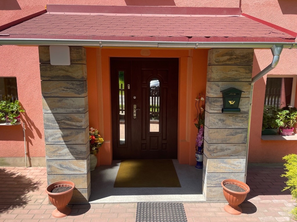 - Dom składa się z pięciu pokoi, kuchni, WC, łazienki, holu oraz garderoby,
