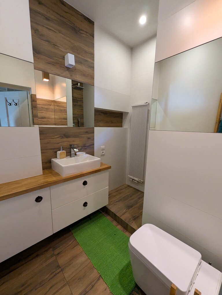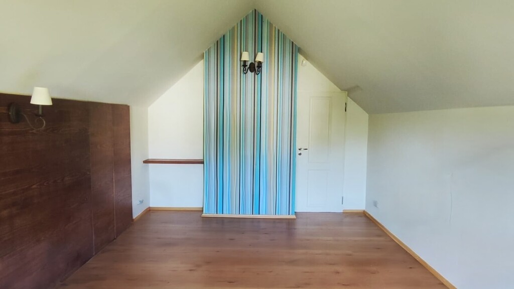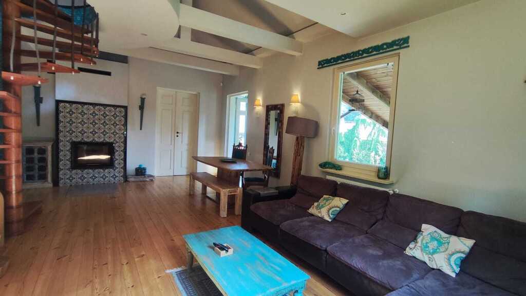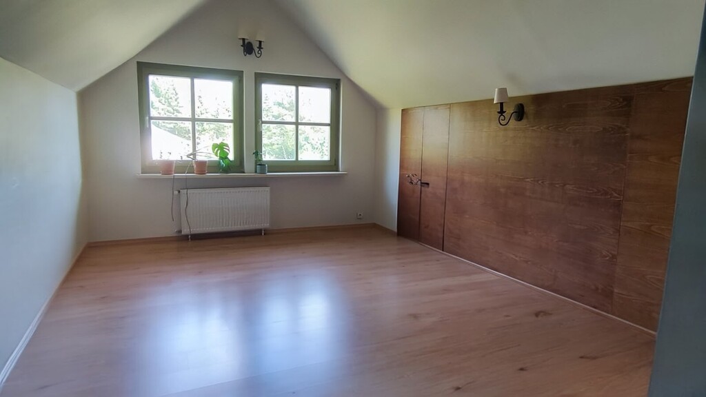 - układ pomieszczeń: salon z kominkiem, kuchnia, 3 sypialnie, łazienka, antresola