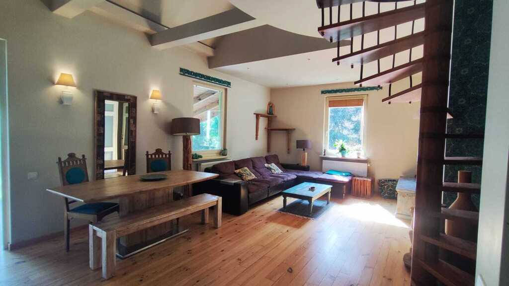 Na sprzedaż urokliwy, dom o powierzchni użytkowej ok. 125 m², położony w spokojnej i malowniczej okolicy, w sąsiedztwie lasu. Dom znajduje się zaledwie 3 km od parku zdrojowego w Nałęczowie, co pozwala cieszyć się bliskością natury, a jednocześnie wygodnym dostępem do infrastruktury miasta.